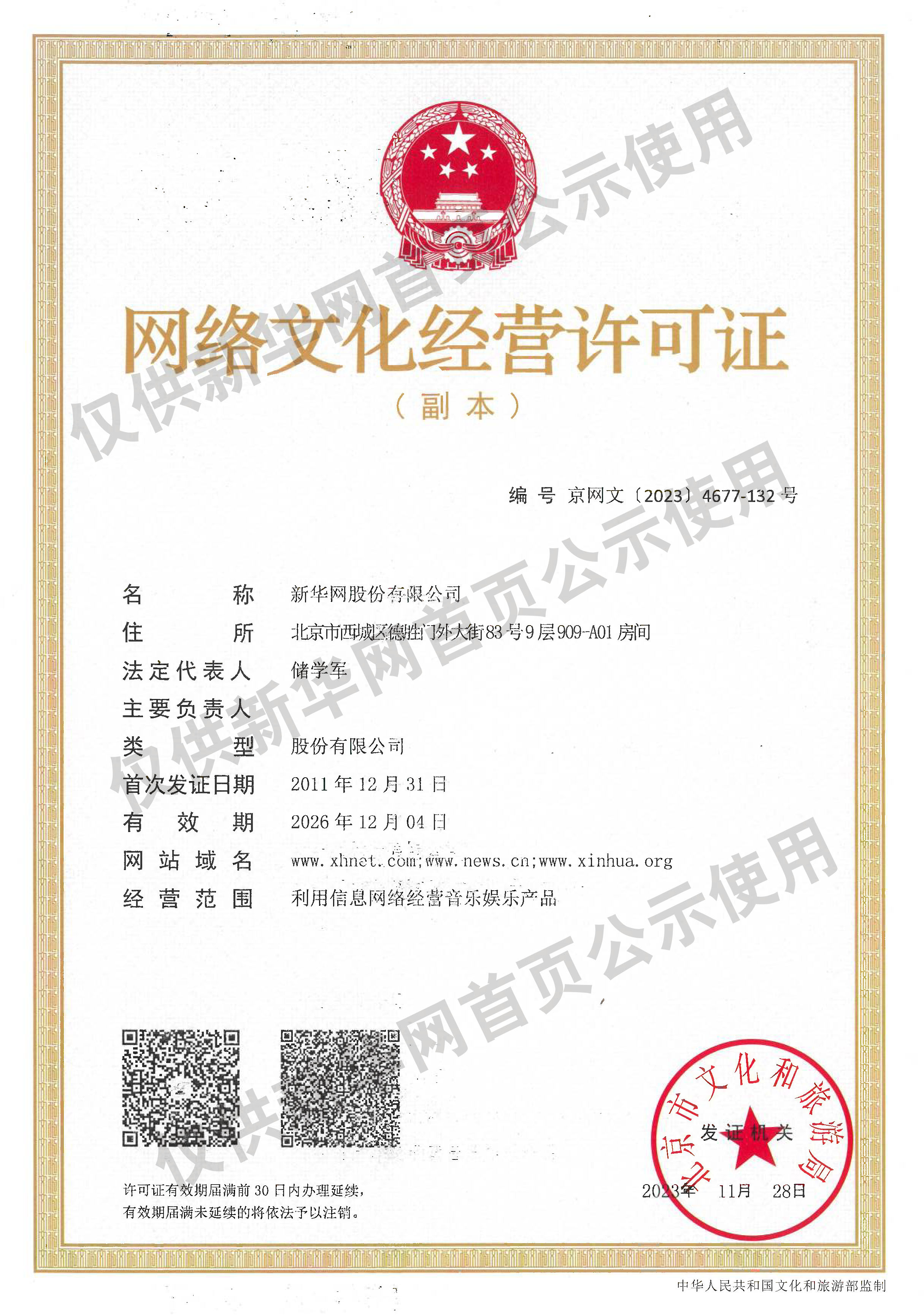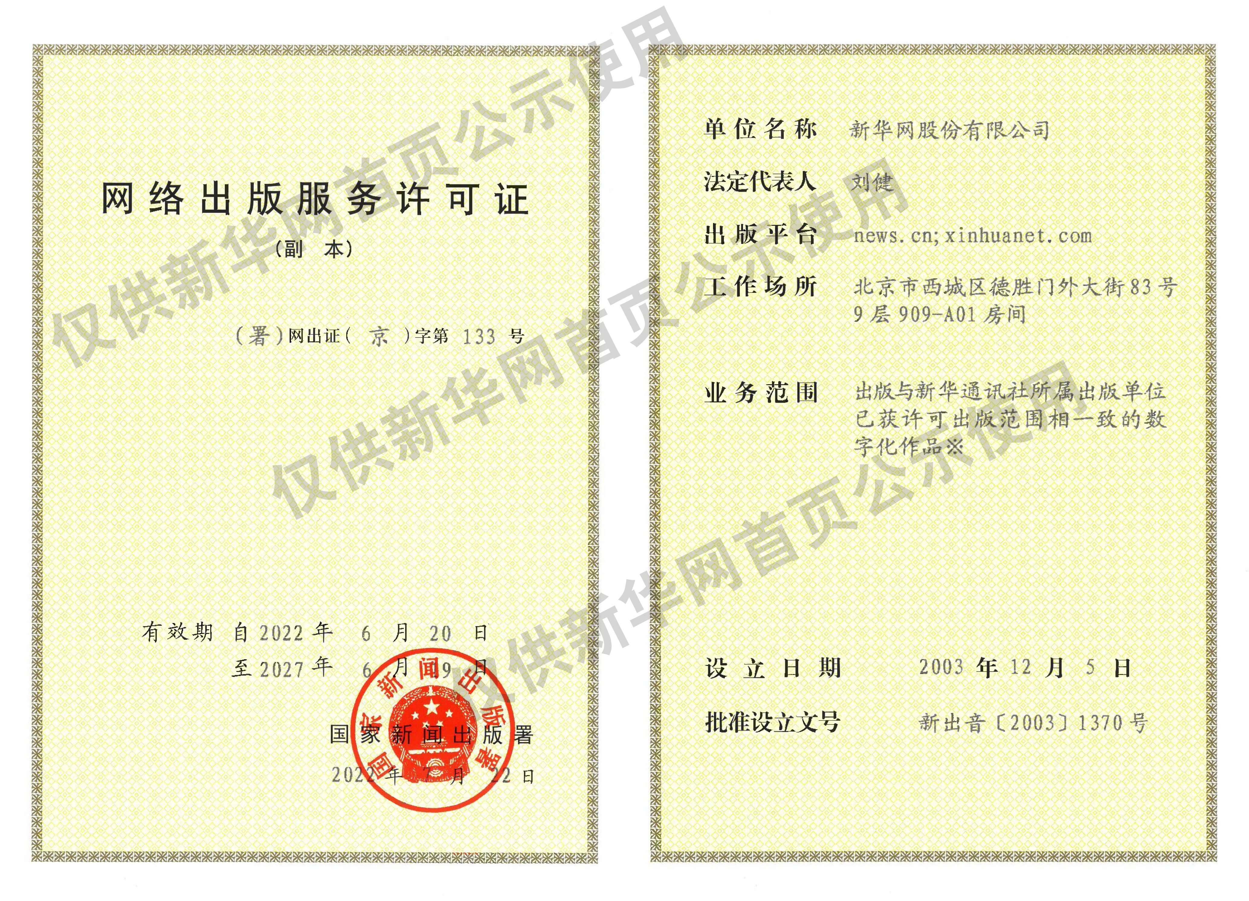 本站所刊登的新華社及新華網(wǎng)各種新聞﹑信息和各種專(zhuān)題專(zhuān)欄資料,均為新華網(wǎng)版權所有,未經(jīng)協(xié)議授權禁止下載使用。
