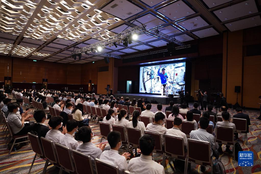 9月3日,正在天宮空間站執行任務(wù)的神舟十二號乘組與香港科技工作者、教師和大中學(xué)生進(jìn)行天地連線(xiàn)互動(dòng)。新華社記者 呂小煒 攝