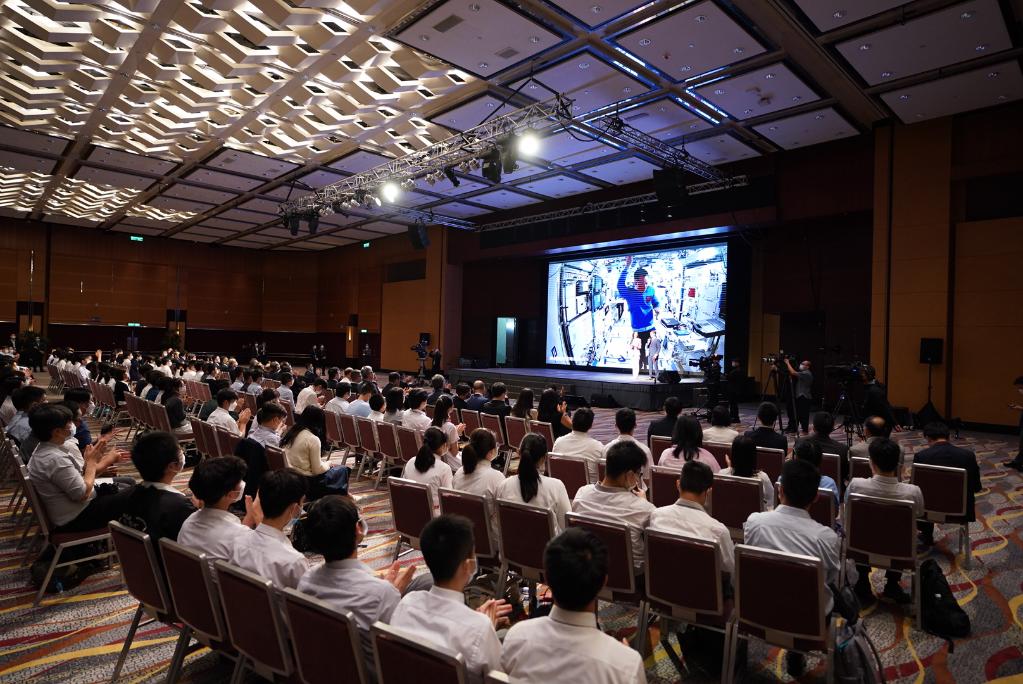 9月3日,神舟十二號乘組與香港科技工作者、教師和大中學(xué)生進(jìn)行天地連線(xiàn)互動(dòng)。新華社記者 呂小煒 攝