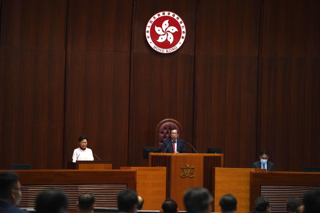 香港特區行政長(cháng)官林鄭月娥6日上午11時(shí)在特區立法會(huì )發(fā)表她任期內的第五份施政報告。新華社記者 呂小煒 攝