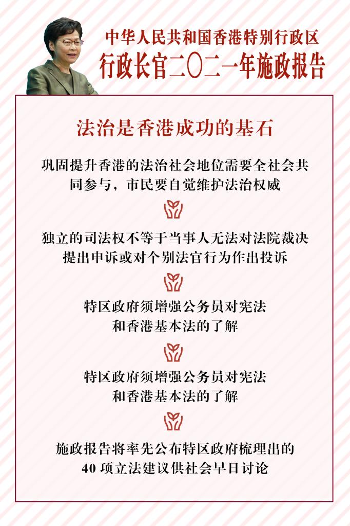新華社香港10月6日電(記者王茜)香港特區行政長(cháng)官林鄭月娥6日在特區立法會(huì )發(fā)表她任期內的第五份施政報告時(shí)表示,法治是香港核心價(jià)值和賴(lài)以成功的基石。