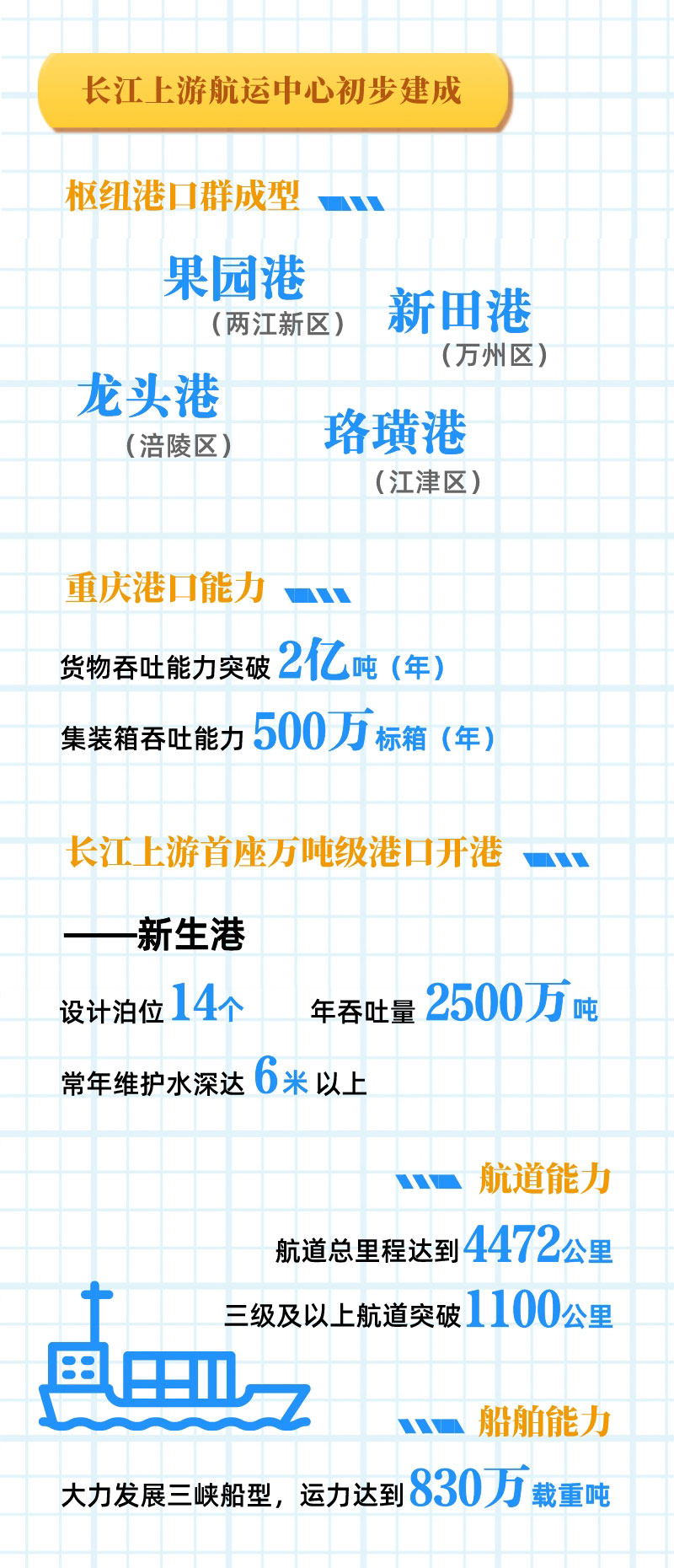 日前印發(fā)的《成渝地區雙城經(jīng)濟圈建設規劃綱要》提出目標,到2025年成渝地區要基本建成長(cháng)江上游航運中心和物流中心。