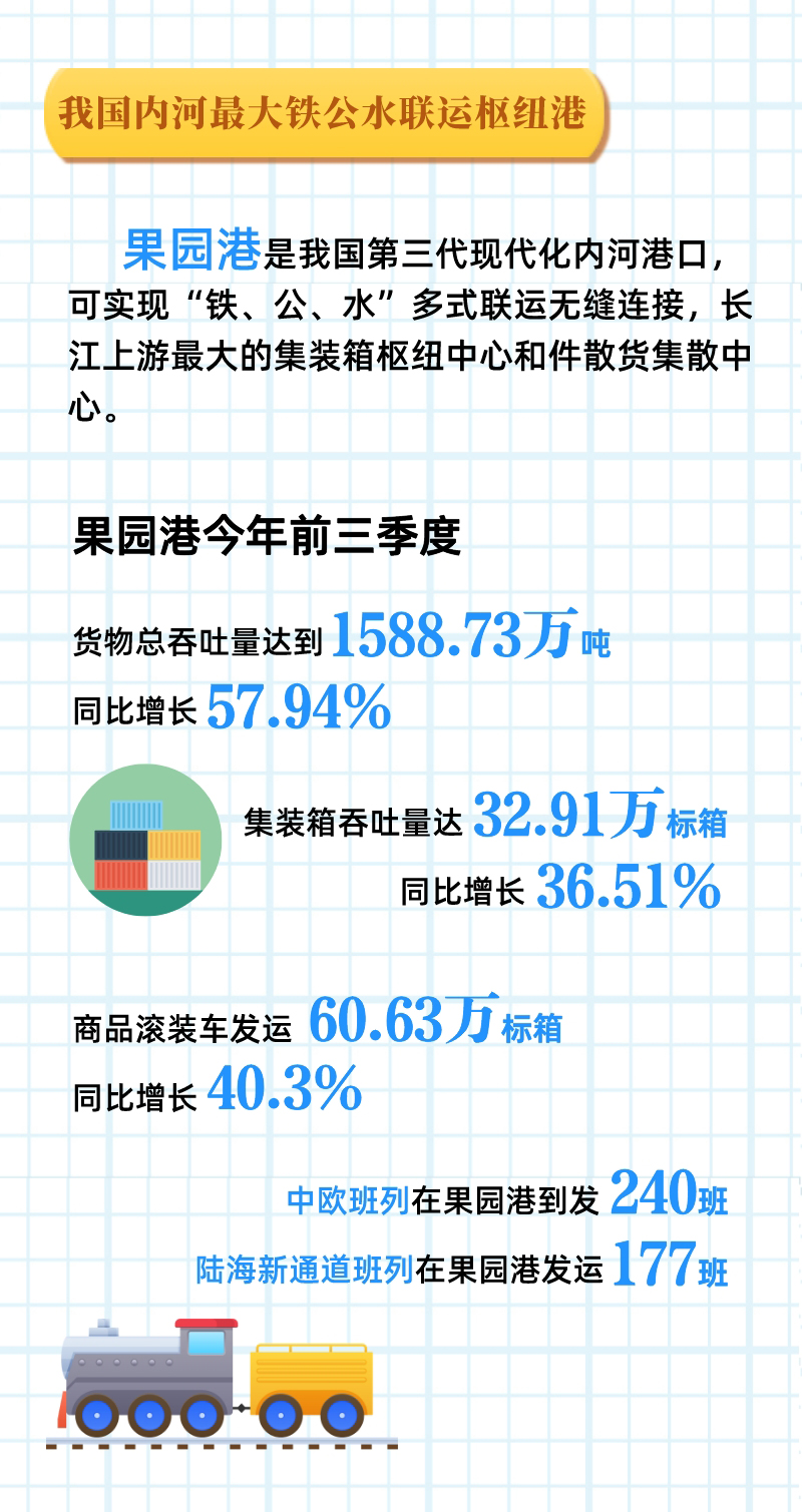 這是長(cháng)江上游最大鐵公水聯(lián)運港果園港前三季度交出的“成績(jì)單”。