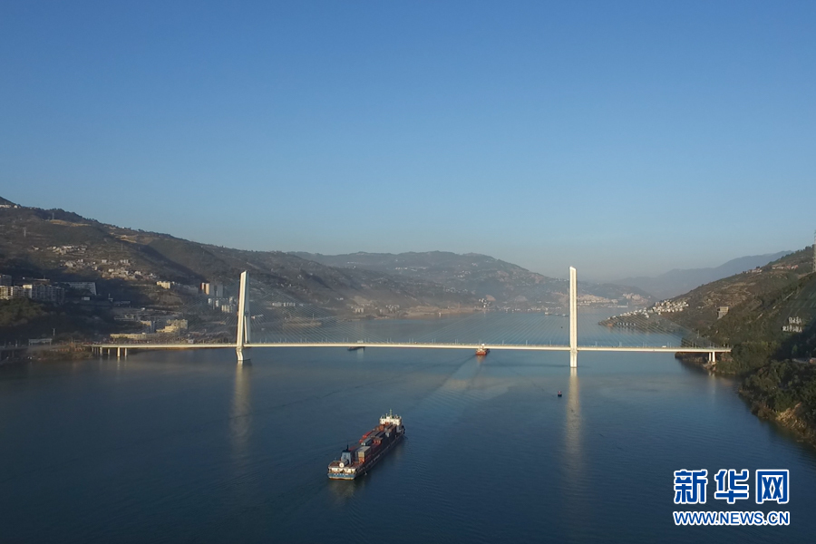 兩岸青山間,一搜貨輪駛過(guò)長(cháng)江重慶段。新華網(wǎng)發(fā)