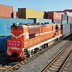 “連云港—二連浩特—莫斯科”中歐班列在江蘇連云港中哈物流基地整裝待發(fā)(11月23日攝,無(wú)人機照片)。新華社發(fā)(王健民 攝)