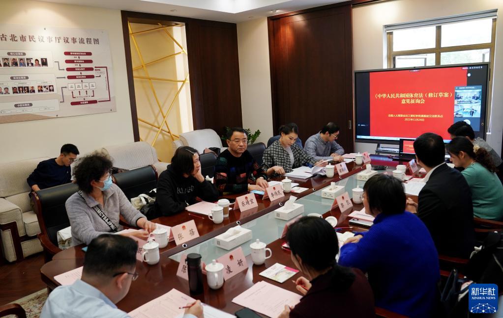 上海長(cháng)寧區虹橋街道基層立法聯(lián)系點(diǎn)召開(kāi)《中華人民共和國體育法(修訂草案)》意見(jiàn)征詢(xún)座談會(huì )(11月26日攝)。新華社記者 劉穎 攝