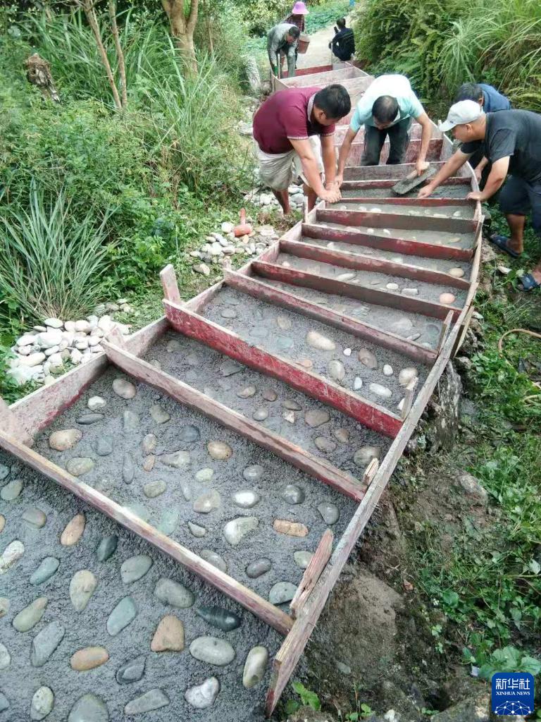 廣西龍勝各族自治縣龍脊鎮岳武村群眾在修建村里的一條觀(guān)光小道(資料照片)。新華社發(fā)(潘澤雷 攝)
