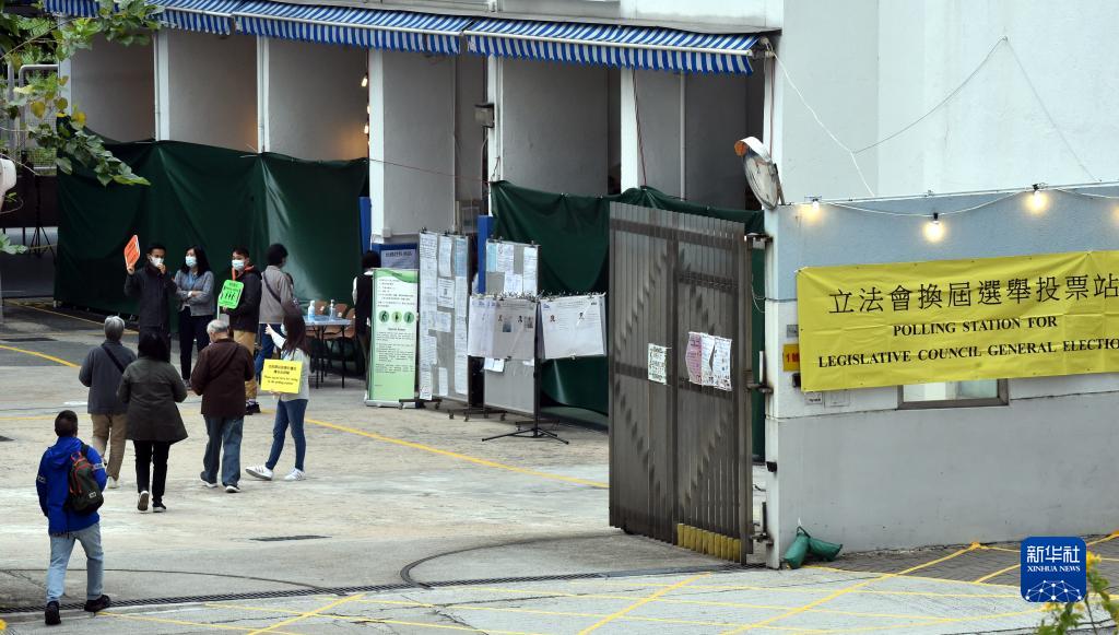 12月19日,在位于荃灣天主教石鐘山紀念小學(xué)投票站,選民陸續進(jìn)入站內準備投票。新華社記者 盧炳輝 攝