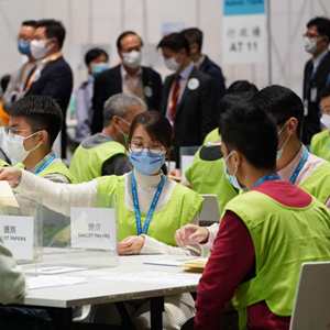 12月19日,香港順利舉行完善選舉制度后首次立法會(huì )選舉投票,工作人員點(diǎn)票現場(chǎng)。新華社記者 呂小煒 攝