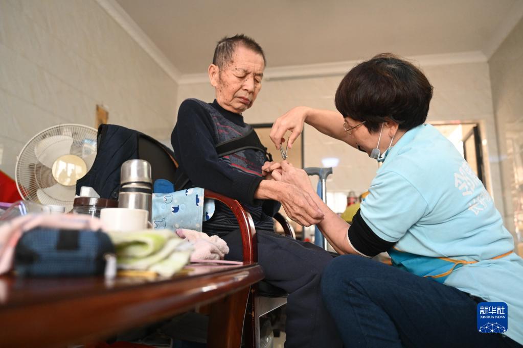 11月25日,長(cháng)護險居家護理服務(wù)機構晉江鄰鹿養老服務(wù)有限公司護理員林銀花在福建晉江梅嶺街道蔡厝社區的老人家里開(kāi)展定期居家護理服務(wù)。新華社記者 林善傳 攝
