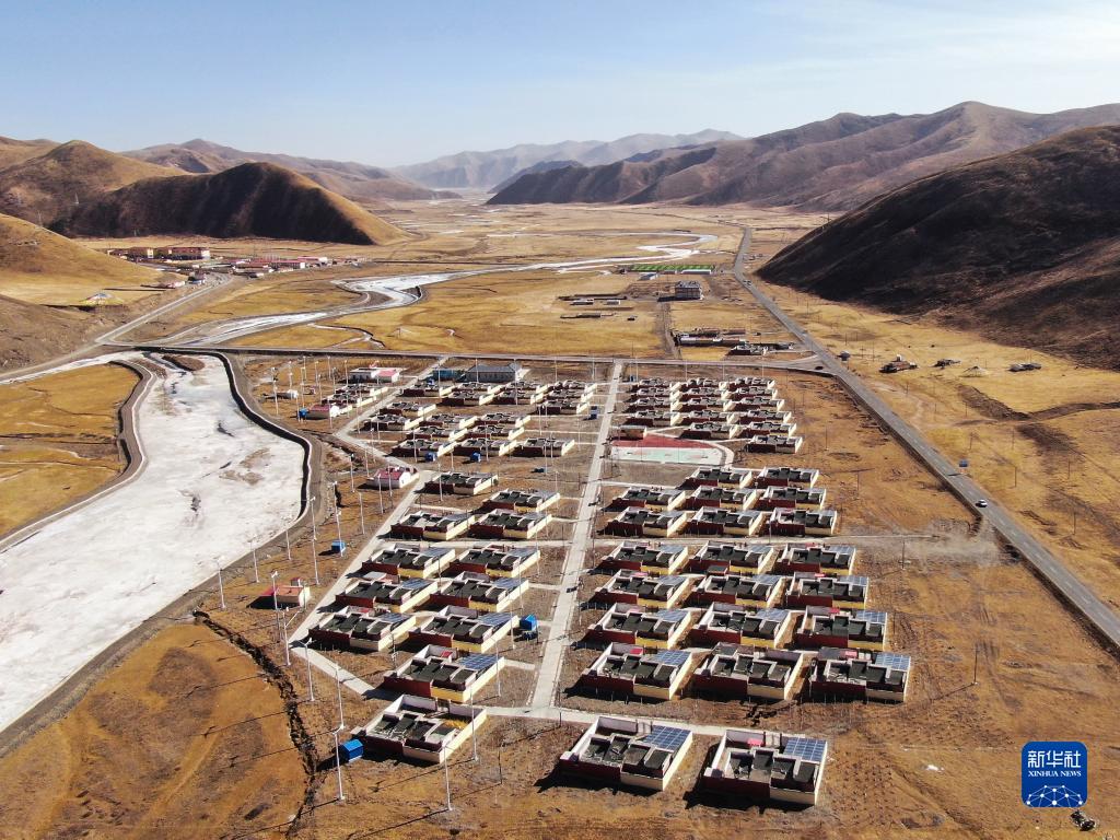 這是1月11日拍攝的青海省果洛藏族自治州甘德縣上貢麻鄉隆亞村搬遷點(diǎn)全貌(無(wú)人機照片)。新華社記者 張龍 攝