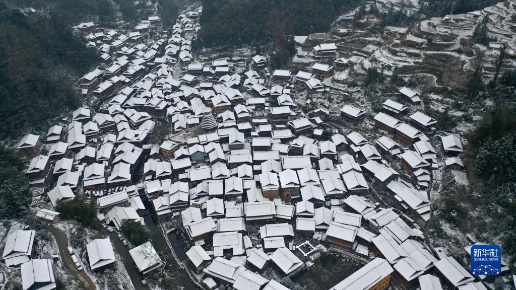 12月27日在貴州省榕江縣栽麻鎮拍攝的雪景(無(wú)人機照片)。