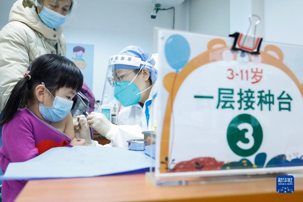 家長(cháng)帶著(zhù)孩子在北京新街口街道新冠疫苗接種點(diǎn)接種疫苗(12月9日攝)。新華社記者 張玉薇 攝