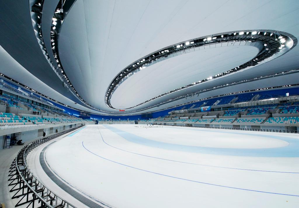 2021年5月,約1.2萬(wàn)平方米的全冰面首次在國家速滑館“冰絲帶”制成并亮相。新華社記者張晨霖攝