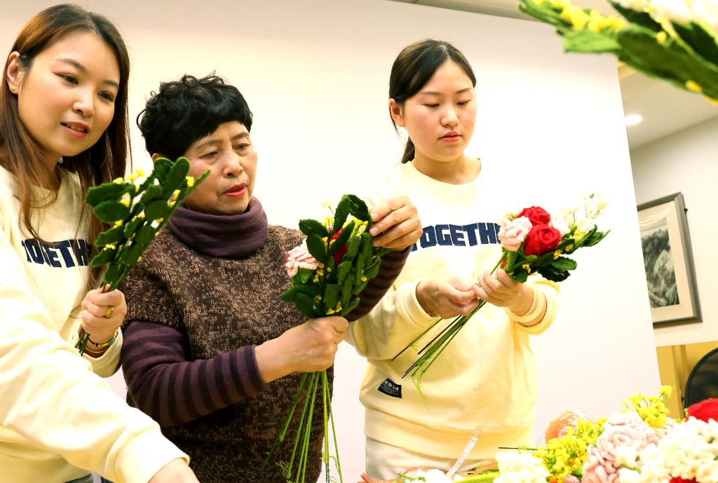 勵阿姨50歲退休才接觸編織絨線(xiàn)花