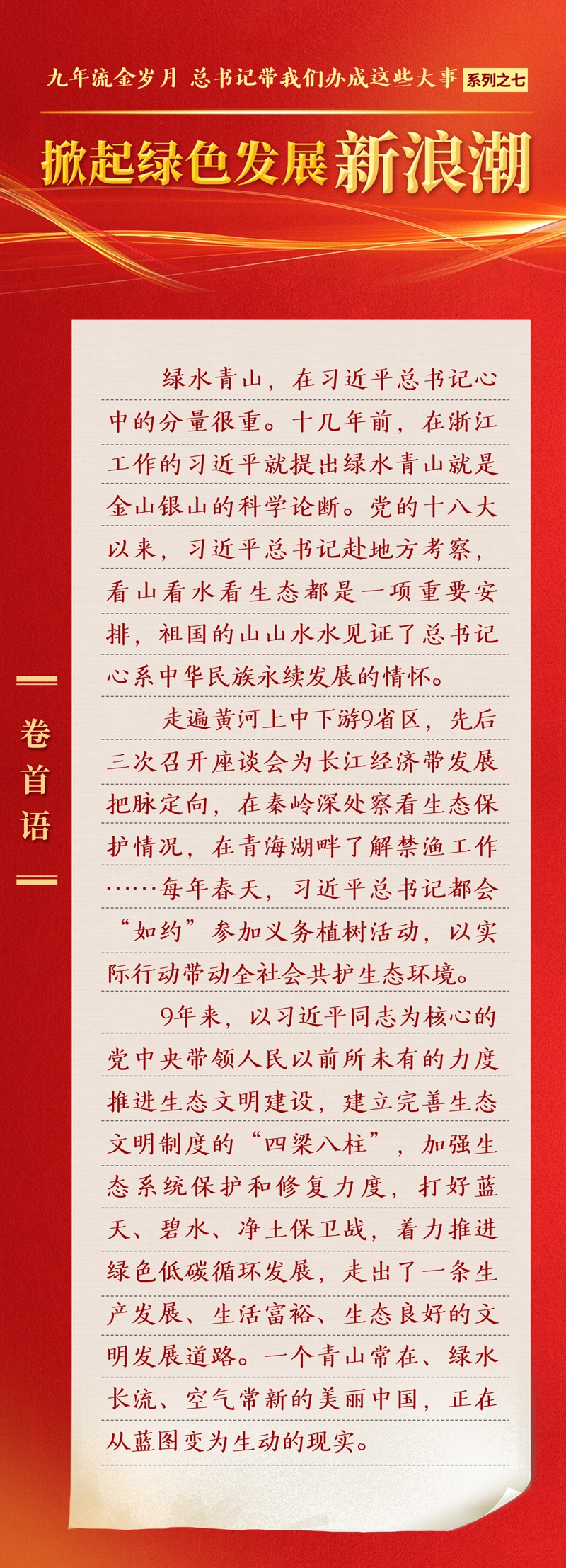 九年流金歲月,總書(shū)記帶我們辦成這些大事|掀起綠色發(fā)展新浪潮