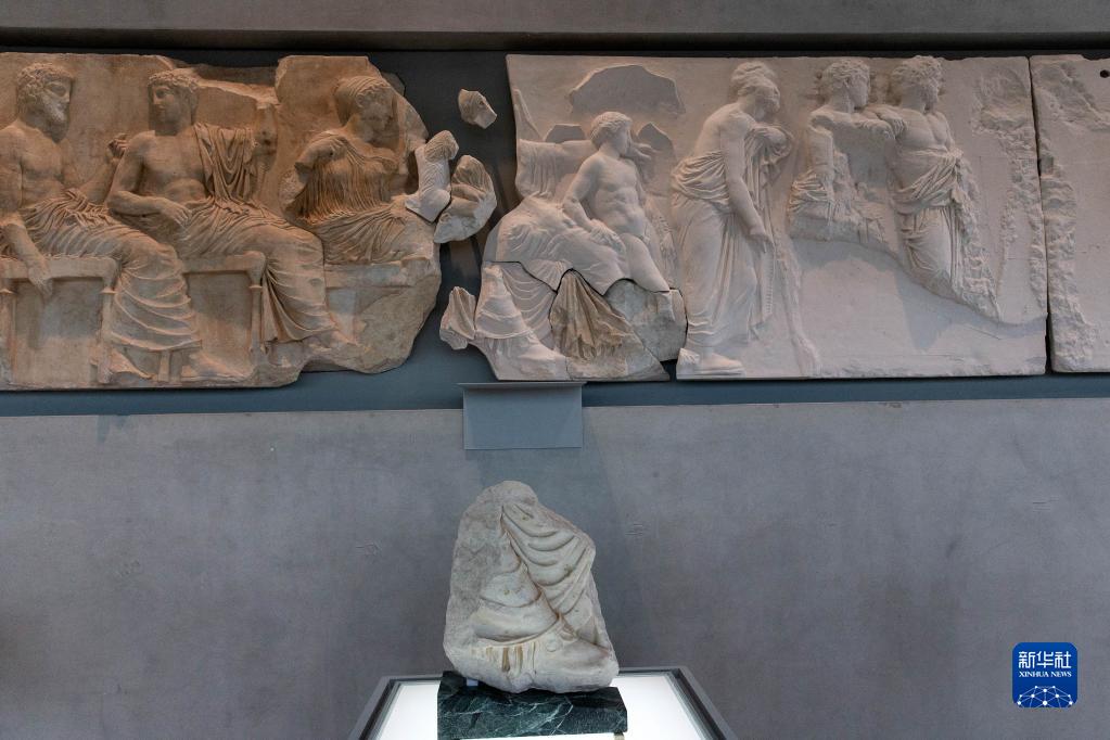 在意大利和希臘兩國博物館簽署長(cháng)期租借協(xié)議后,原保存在意大利一家博物館的一塊雅典衛城帕特農神廟石雕碎片10日在希臘雅典衛城博物館展出。