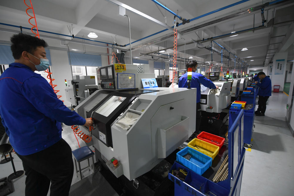 1月6日,在杭州市臨安區昌化鎮工業(yè)園區的杭州鑫澤源精密制品有限公司車(chē)間,工人們在趕制訂單產(chǎn)品。新華社記者 徐昱 攝