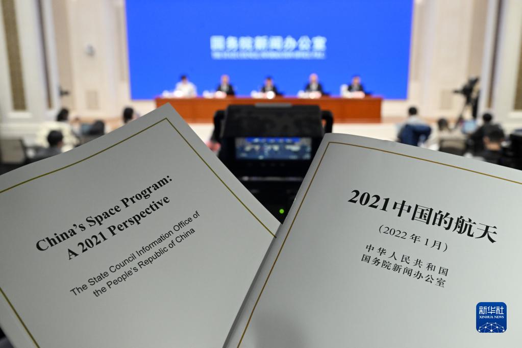 這是1月28日拍攝的《2021中國的航天》白皮書(shū)。當日,國務(wù)院新聞辦公室發(fā)布《2021中國的航天》白皮書(shū),并在北京舉行新聞發(fā)布會(huì )?!⌒氯A社記者 金良快 攝