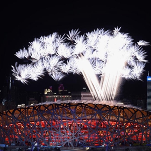 北京2022年冬奧會(huì )開(kāi)幕式上的焰火表演(2月4日攝)。新華社記者 盧燁 攝