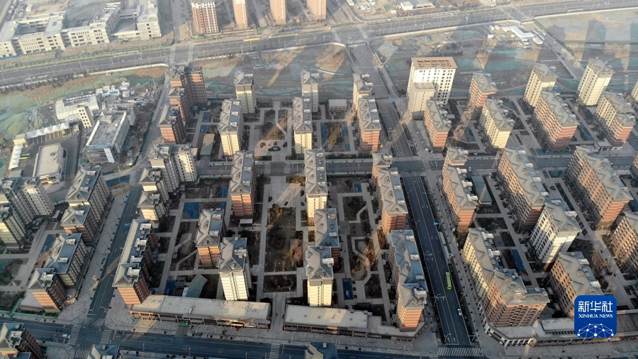 這是2022年1月6日拍攝的河北雄安新區容東片區安置房項目(無(wú)人機照片)。新華社記者 駱學(xué)峰 攝