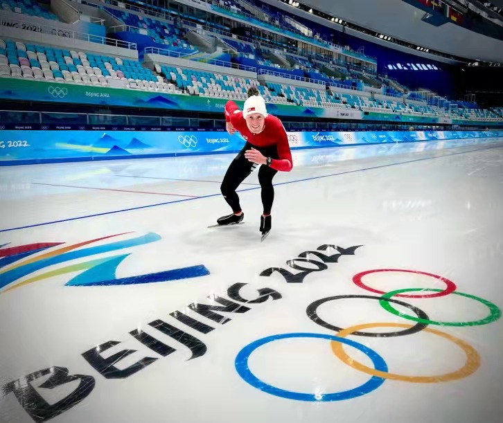 丹麥速度滑冰運動(dòng)員維克多·索魯普在國家速滑館“冰絲帶”訓練時(shí)的留影。(圖片由維克多·索魯普提供)
