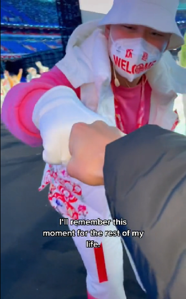 德國運動(dòng)員在北京冬奧會(huì )開(kāi)幕式上與工作人員“碰拳”(網(wǎng)絡(luò )視頻截屏)