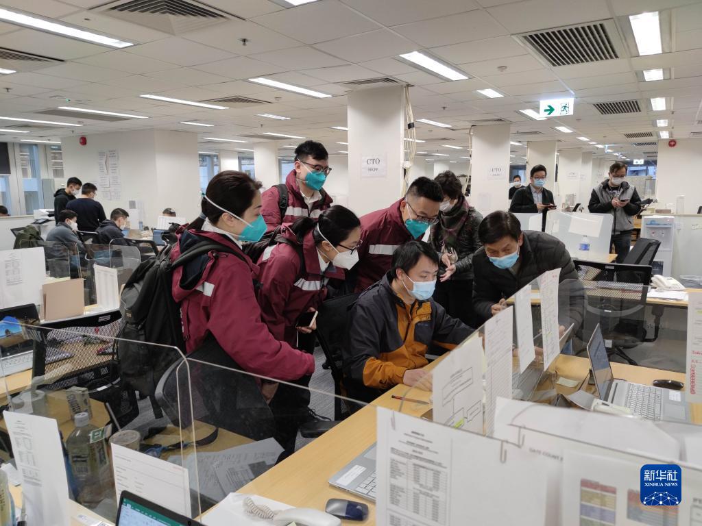 2月20日,內地專(zhuān)家組在特區政府衛生署代表陪同下到訪(fǎng)檢疫中心工作小組,了解特區政府在檢疫隔離方面的工作。新華社發(fā)