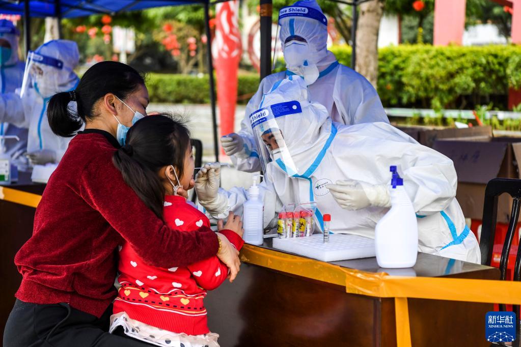 2月16日,在廣西百色市德??h,醫務(wù)人員在做核酸采樣。目前,百色疫情社區傳播鏈基本阻斷,社會(huì )面基本實(shí)現清零。新華社記者 曹祎銘 攝