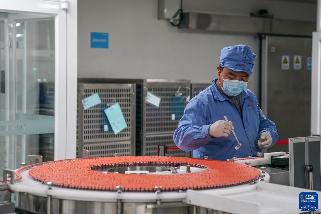 2021年7月8日,工作人員在北京科興疫苗生產(chǎn)流水線(xiàn)上工作。新華社記者 彭子洋 攝