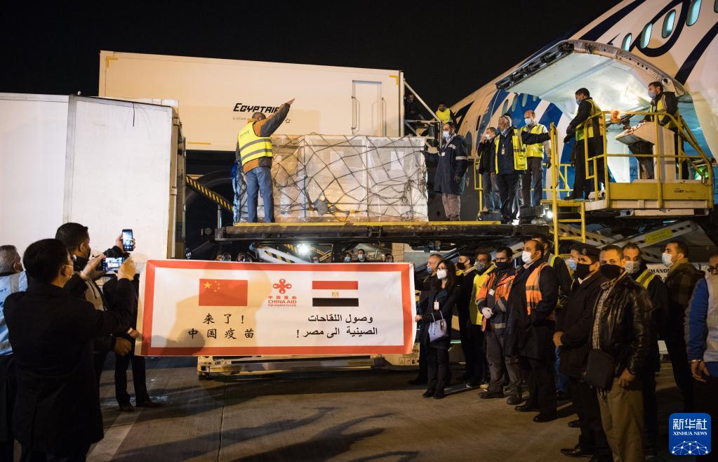 2021年2月23日,中國援助埃及的首批新冠疫苗抵達埃及開(kāi)羅國際機場(chǎng)。新華社記者 鄔惠我 攝