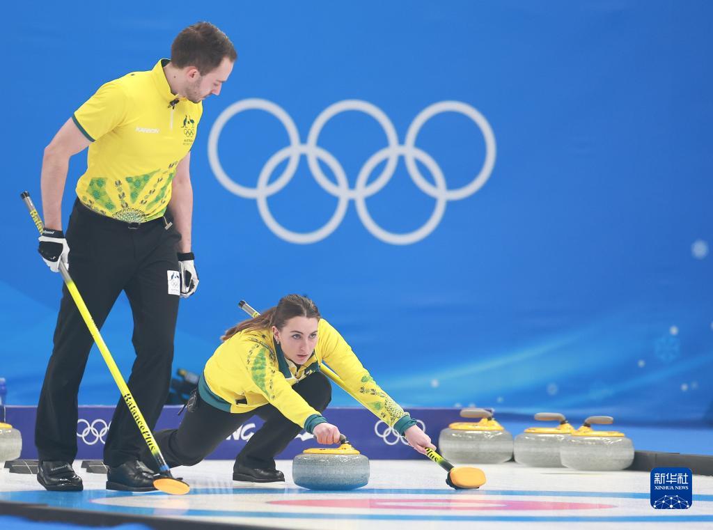 2月6日,澳大利亞隊選手塔莉·吉爾(右)、迪安·休伊特在比賽中。新華社記者劉續攝