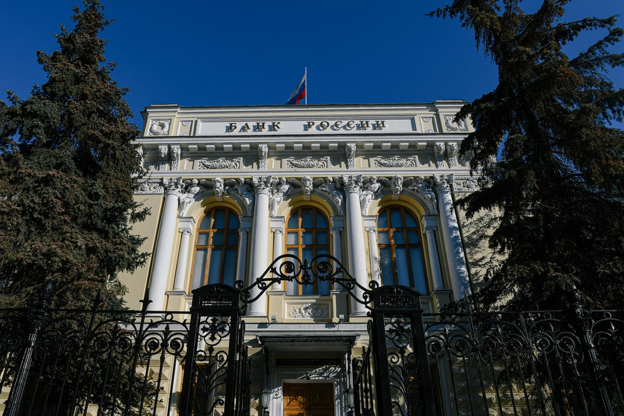 這是2022年2月25日在俄羅斯莫斯科拍攝的俄羅斯央行。新華社發(fā)(葉甫蓋尼·西尼岑攝)