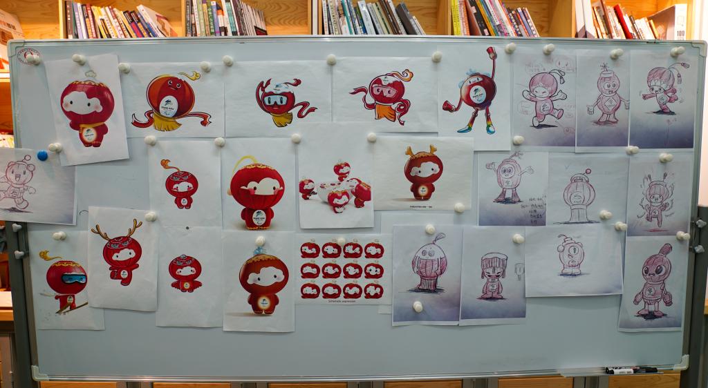 設計室內的“雪容融”草稿圖。新華社記者 王帆 攝