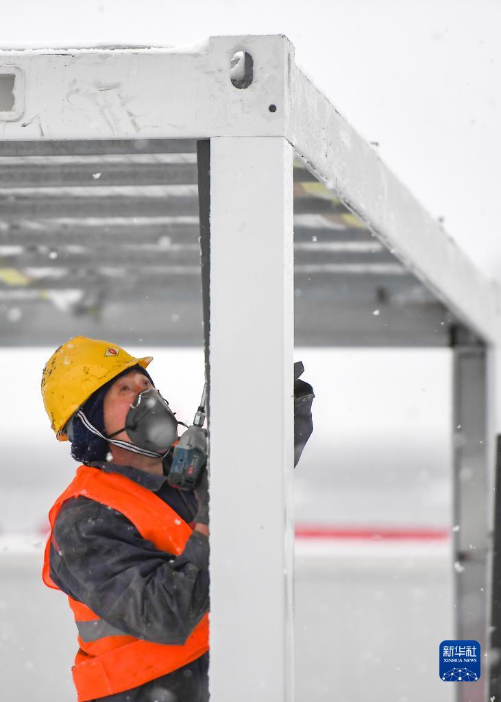 碩大的雪片紛紛揚揚灑落,位于吉林市高新區的隔離方艙施工現場(chǎng)泥濘不堪。