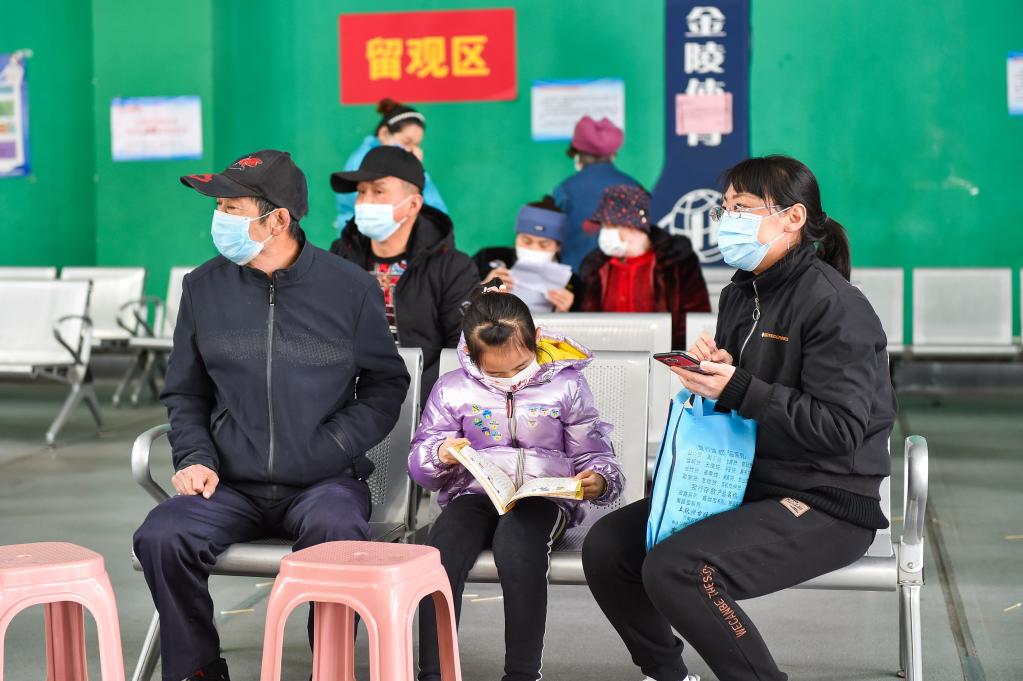3月22日,在呼和浩特市公主府公園新冠疫苗接種點(diǎn),接種完疫苗的市民在留觀(guān)區等待。新華社記者 劉磊 攝