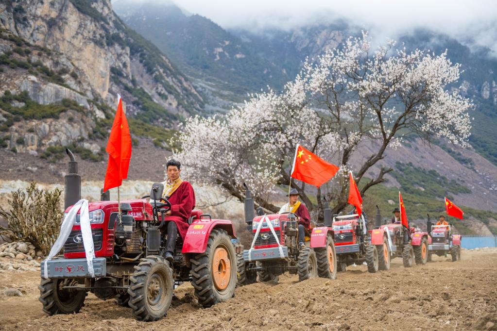 新華社拉薩4月1日電 題:特寫(xiě):藏北桃花谷 細雨迎春耕