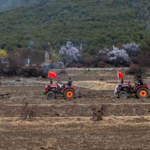 扎西崗村村民白瑪才旺,今年31歲。他熟練地駕駛著(zhù)拖拉機,在陣陣轟隆聲中翻耕田地。須臾間,自家的田地翻耕完畢。白瑪才旺停下拖拉機,準備參加村里隆重的春耕儀式。