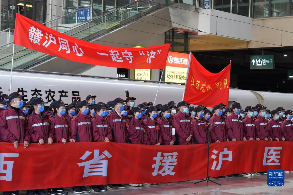 4月3日,江西省援滬醫療隊從南昌出發(fā),馳援上??箵粢咔?。新華社記者 彭昭之 攝