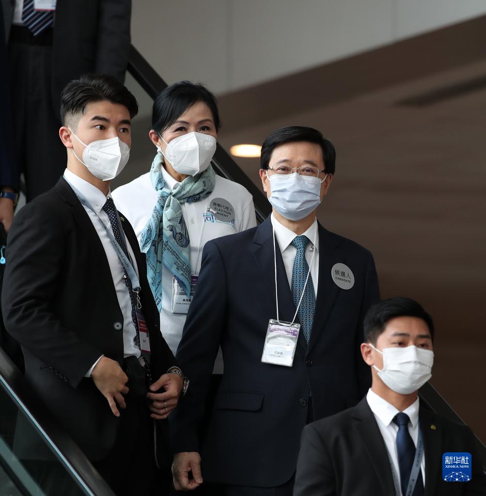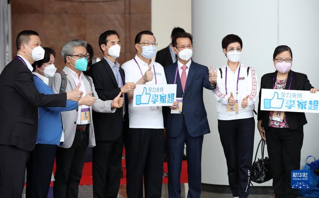 5月8日在香港會(huì )議展覽中心拍攝的候選人李家超(右二)。新華社記者 李鋼 攝