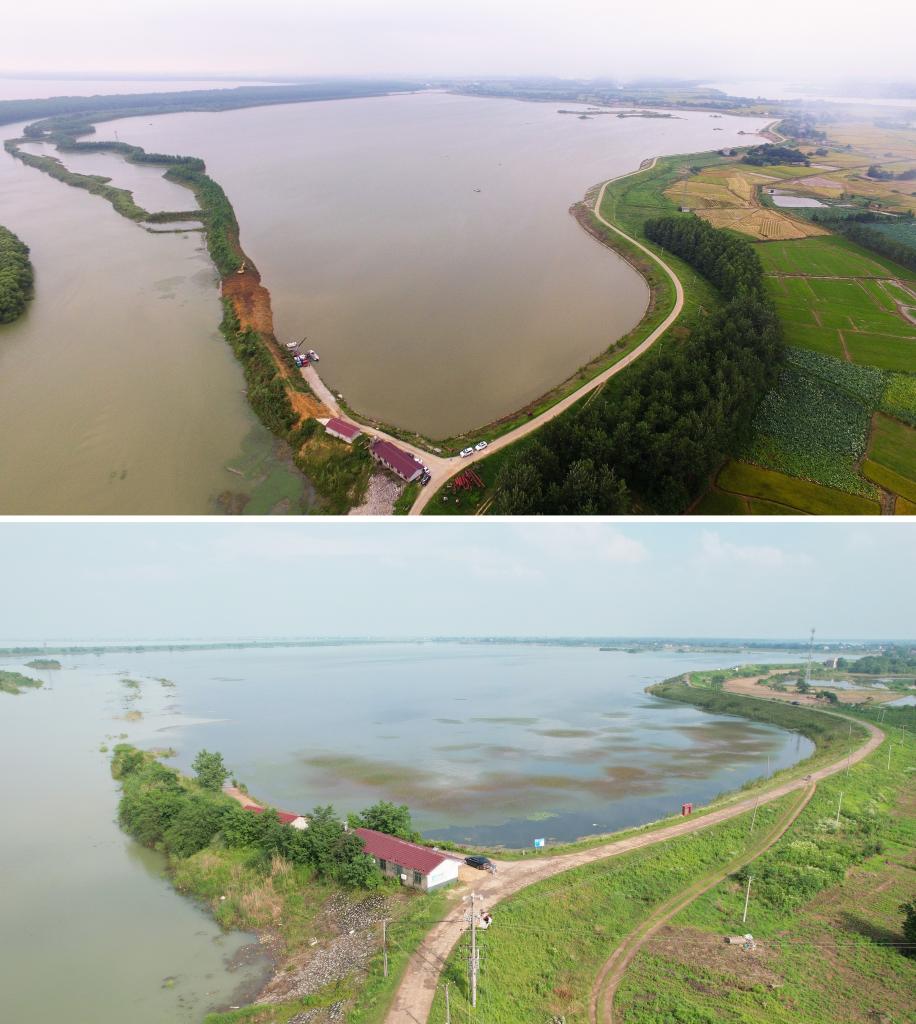 上圖:2018年拍攝的南洞庭車(chē)便湖矮圍被拆除前(湖南省沅江市委宣傳部供圖)
