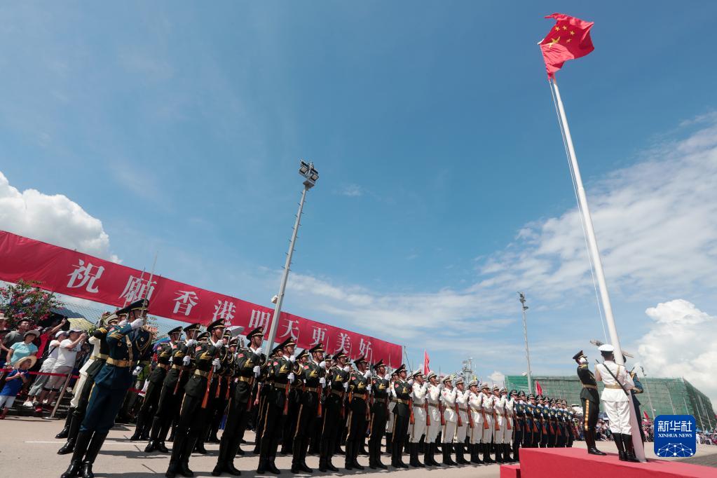 駐香港部隊某旅裝步一連官兵組織升國旗儀式(2019年6月30日攝)。新華社發(fā)(易定 攝)