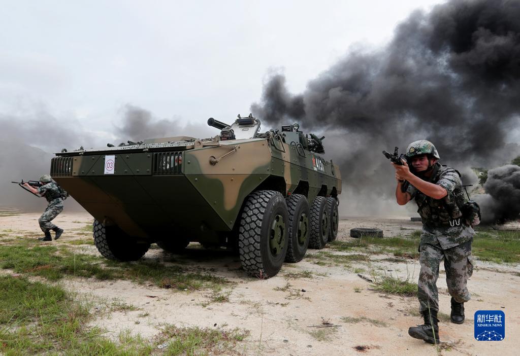 駐香港部隊某旅裝步一連組織人車(chē)協(xié)同訓練(5月24日攝)。新華社發(fā)(易定 攝)