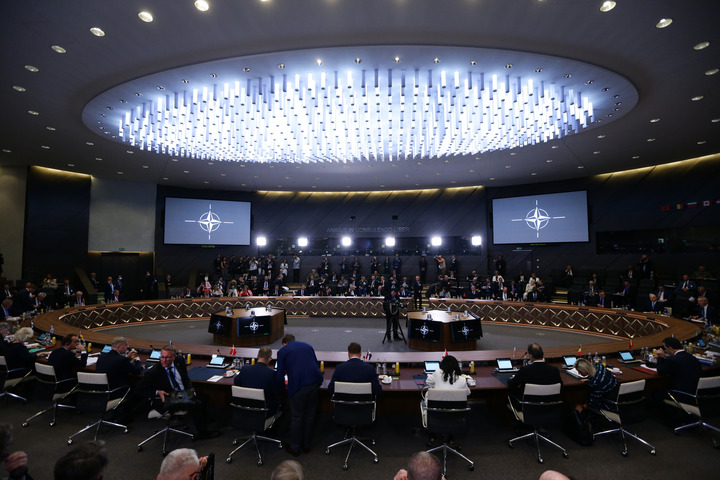6月16日,與會(huì )人員在比利時(shí)布魯塞爾的北約總部出席北約成員國國防部長(cháng)會(huì )議。新華社記者鄭煥松攝