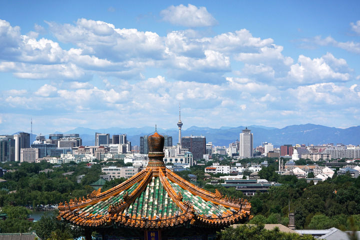 在景山公園拍攝的藍天白云下的北京城市風(fēng)光(2020年5月26日攝)。新華社記者鞠煥宗攝