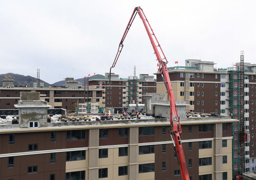 建設者在北京市海淀區西北旺鎮的共有產(chǎn)權住房永靚家園施工現場(chǎng)作業(yè)(2020年3月26日攝)。新華社記者任超攝