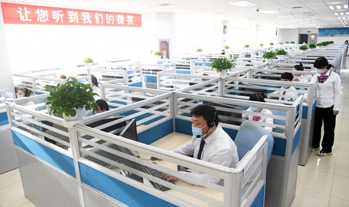 工作人員在位于北京亦莊的北京12345市民熱線(xiàn)服務(wù)中心工作(2020年12月31日攝)。新華社記者任超攝