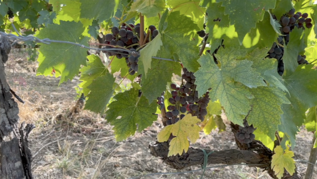 這座農場(chǎng)主要種植葡萄、油橄欖和當季蔬菜等作物,同時(shí)生產(chǎn)葡萄酒和橄欖油等農產(chǎn)品。走進(jìn)烈日炙烤下的葡萄園,這里的土壤呈淺黃色,一些地方甚至已經(jīng)開(kāi)裂,不少葡萄果實(shí)的表皮長(cháng)出了“皺紋”,汁水難以稱(chēng)得上充足。