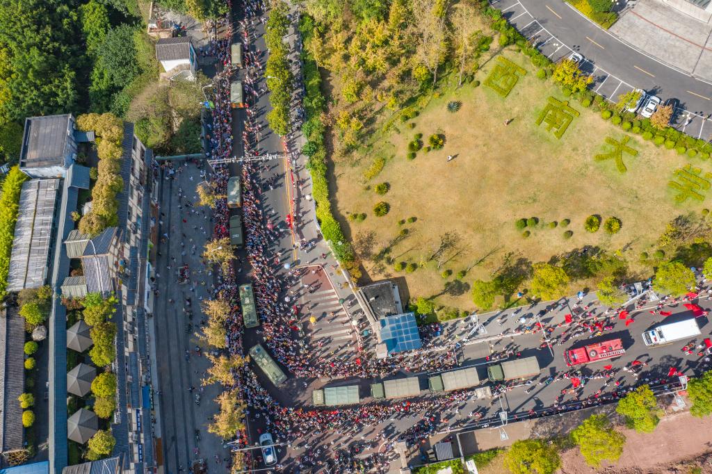 送別的隊伍從校內延伸至校外,雙向四車(chē)道的天生路上,重慶市民們敲響鑼鼓,用各自的方式表達感謝之情。