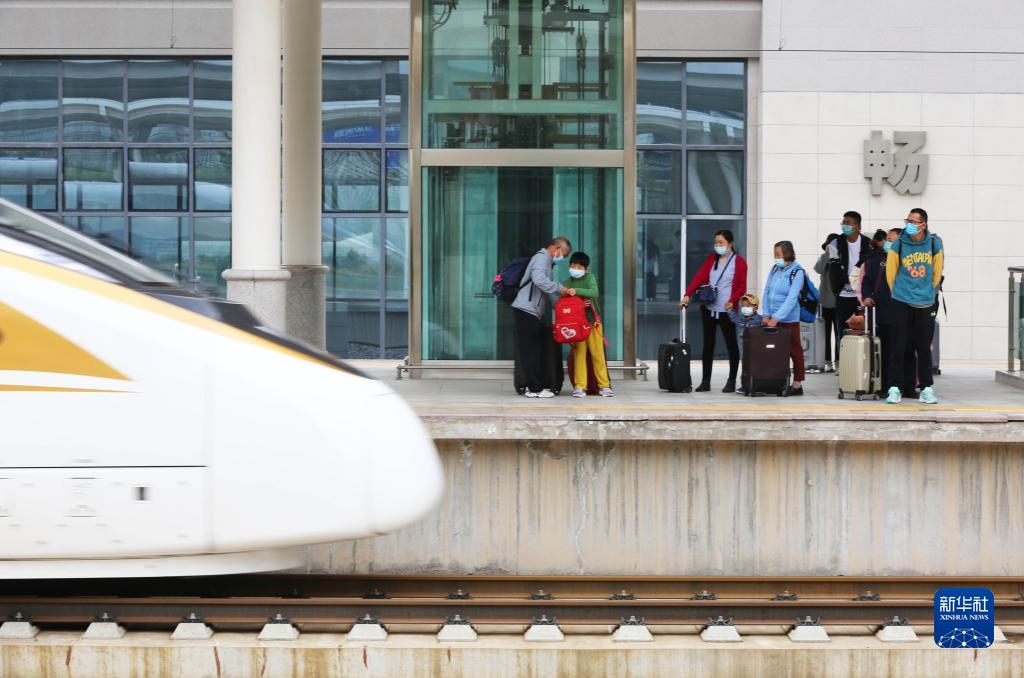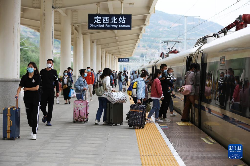 8月31日,旅客在寶蘭高鐵定西北站站臺乘車(chē)出行。當日,為期62天的全國鐵路暑運結束。新華社發(fā)(王克賢 攝)